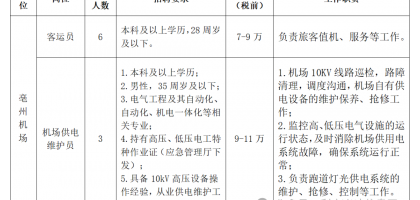 9人!亳州机场公开招聘